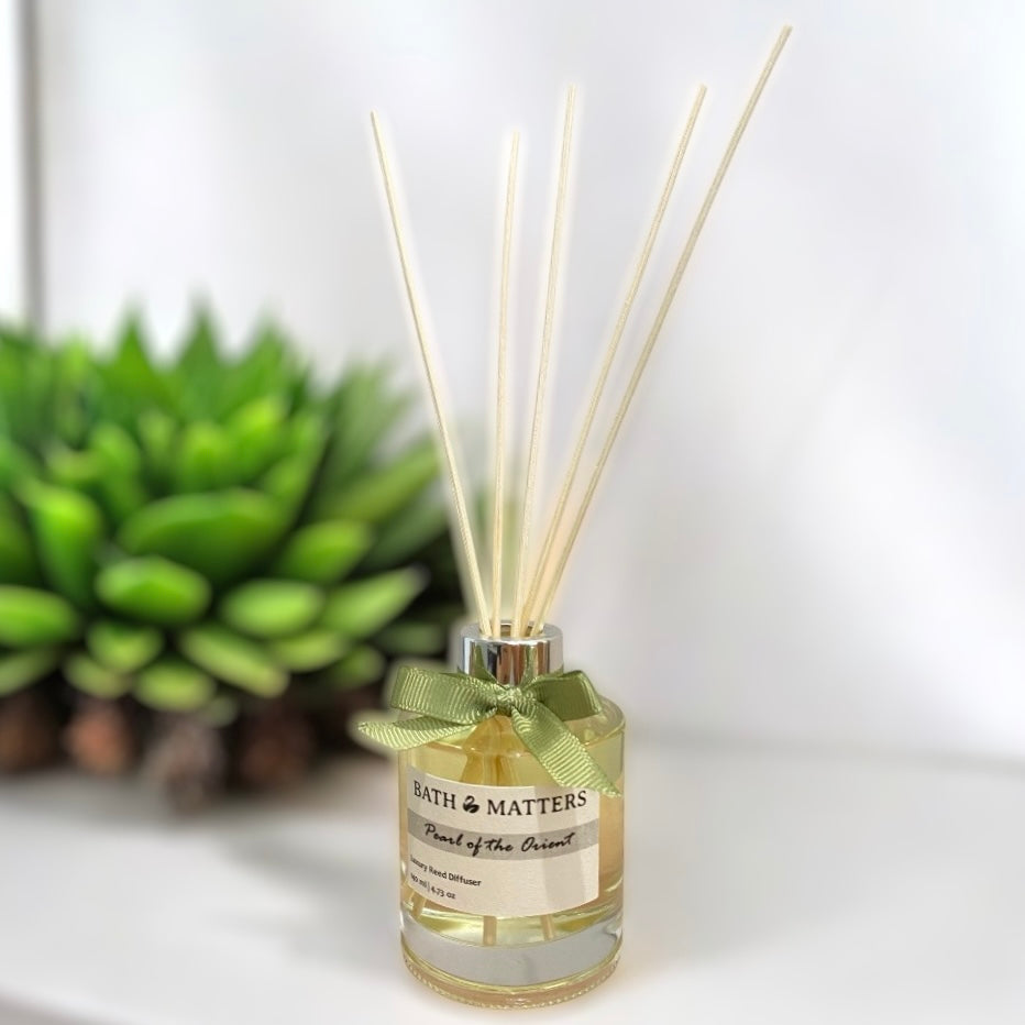 The Pearl of the Orient reed diffuser embraces the timeless elegance of rose with this classic fragrance. Infused with rose geranium, followed by crisp and floral Asian pearls and lily with hints of floral jasmine. It creates relaxation, rejuvenation, alleviating anxiety, and uplifting the spirit to reduce stress. Let this captivating blend create a sanctuary of calm in your space.