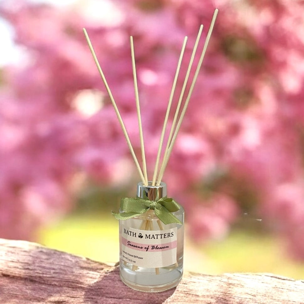 The Seasons of Blossom reed diffuser evokes the fresh and delicate scent of Japanese cherry blossom with fruity and green top notes and a heart of Yuzu fruit combined with sweetly peach blossom notes. It is renowned for creating a captivating and long-lasting scent that will fill your space with beauty and tranquility.